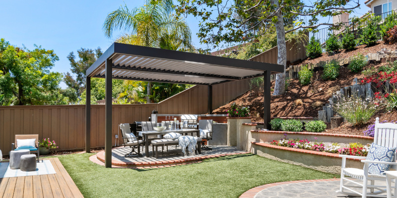 Louvered roofs have horizontal slats you can adjust to control the amount of shade, airflow, and sunlight.